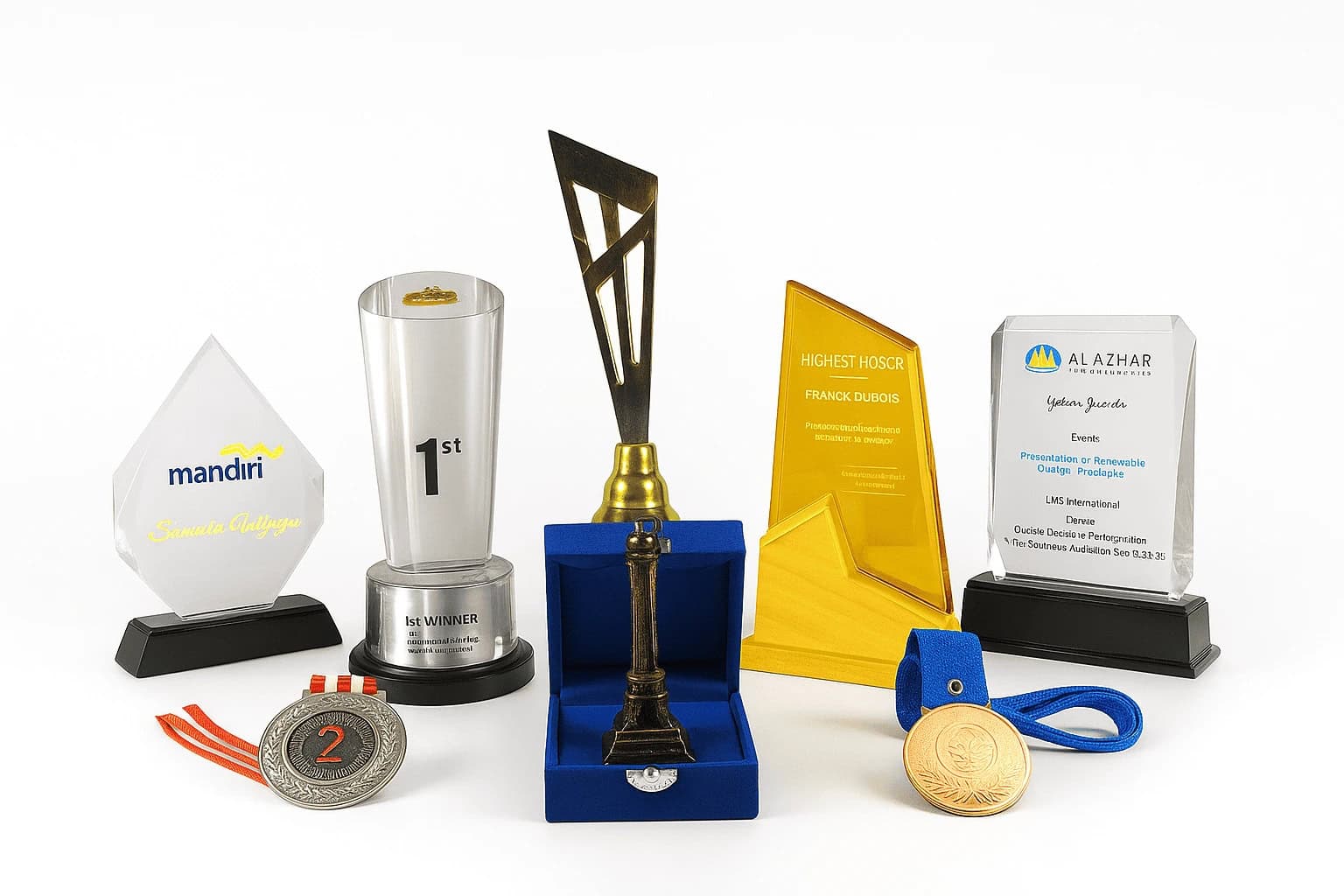 Pilih dari koleksi piala, plakat, dan merchandise kustom kami untuk memberikan penghargaan terbaik di acara Anda. Produk kami memastikan setiap penghargaan mencerminkan keistimewaan pencapaian yang didapatkan.