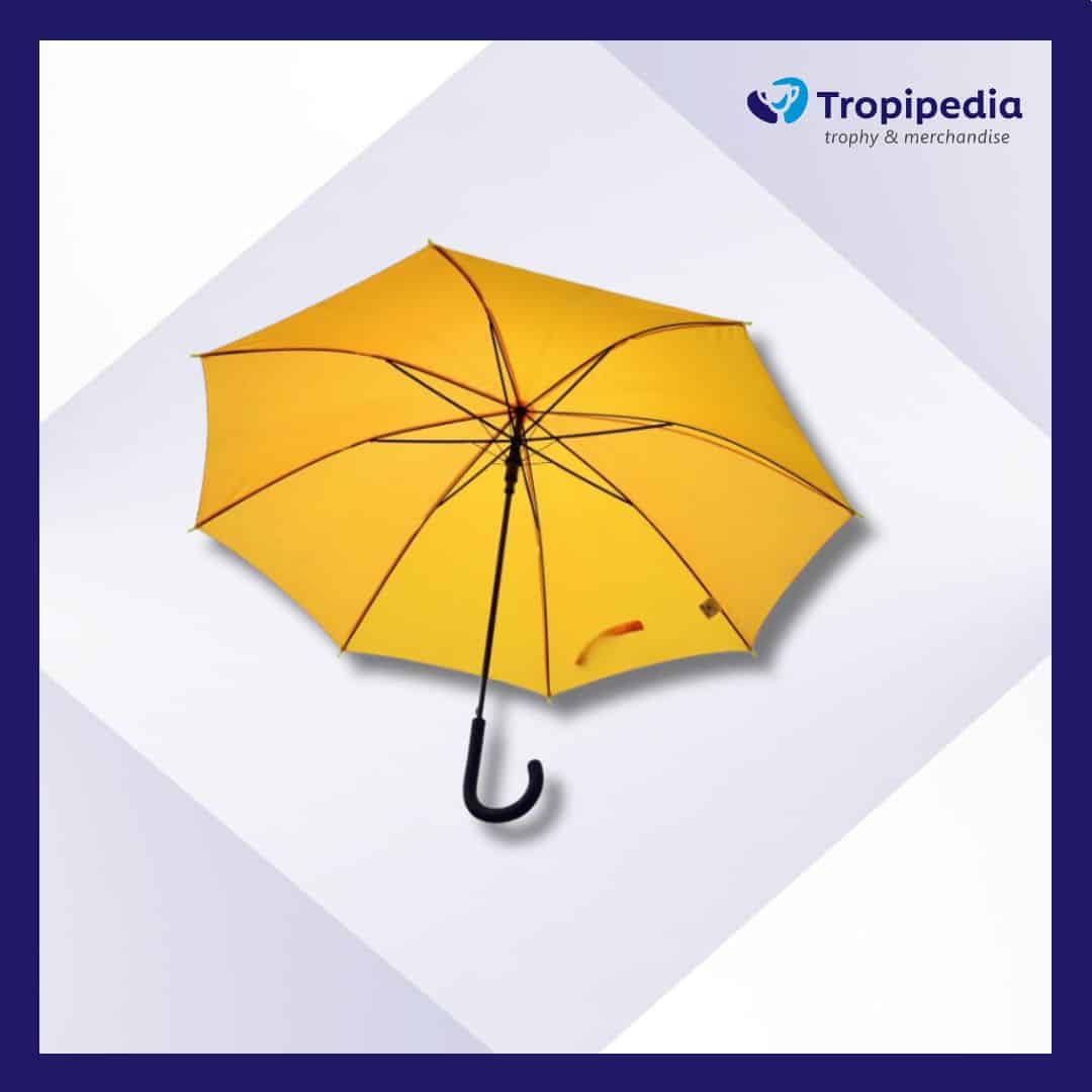 Payung panjang custom memberikan kesan elegan sekaligus fungsional. Dengan rangka kokoh, pegangan nyaman, serta area kanopi luas untuk cetak logo atau desain khusus, payung ini cocok sebagai media promosi premium maupun souvenir berkelas.