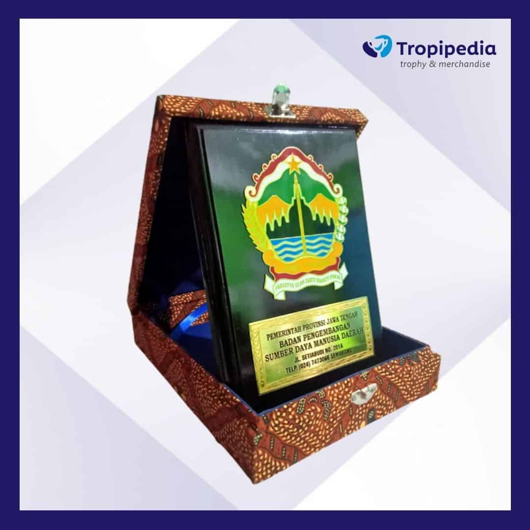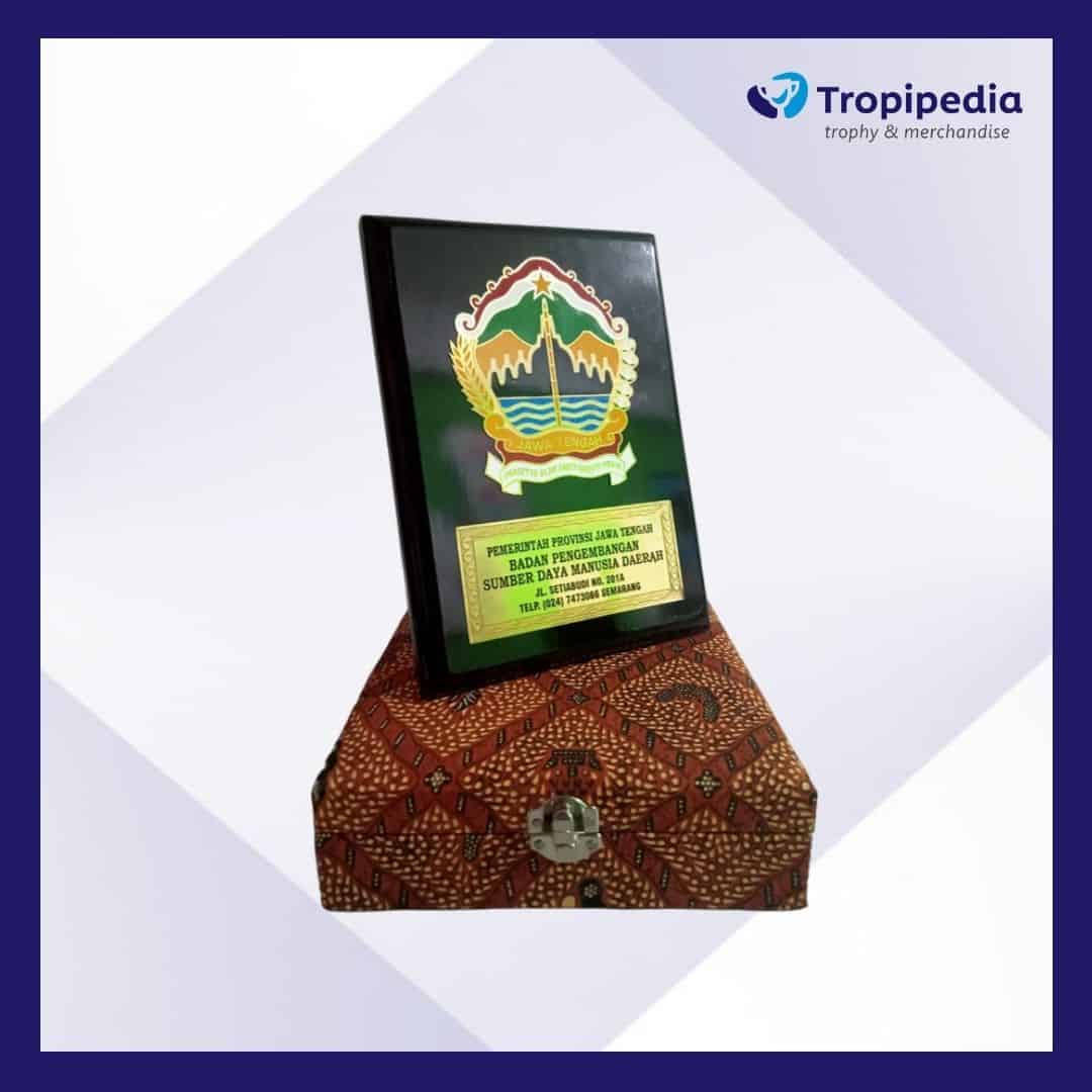 Plakat ekslusif untuk Badan Pengembangan Sumber Daya Daerah PEMPROV JATENG menggunakan bahan kayu hitam, plat kuningan, bentuk premium dan elegan, dapat di lipat . plakat ini cocok untuk kenang-kenangan instansi. Yuk buat Trophy & Plakat / Vandel Eksklusif dengan bentuk khas Instansi / Organisasimu di Tropipedia Hubungi kami untuk mewujudkannya.… Selengkapnya »